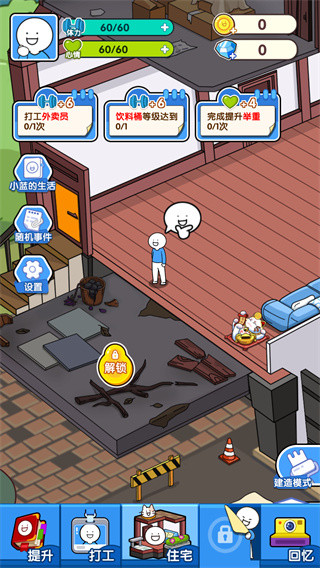 1、操控小蓝进行打工,游戏里还有很多的工作玩家们可以选择;