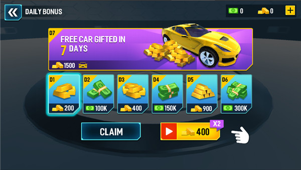 1、多样不同类型的汽车,可以随意挑选,自由驾驶竞速;