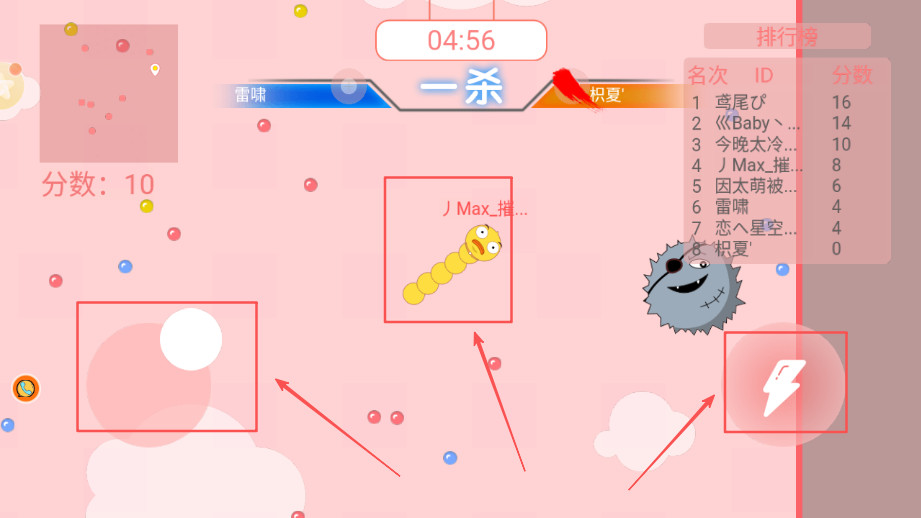 2、操控蛇的时候要小心使用操作摇杆,注意避开其他玩家的蛇身,不能撞到上面,否则自己的蛇就会失败,得重新开始。