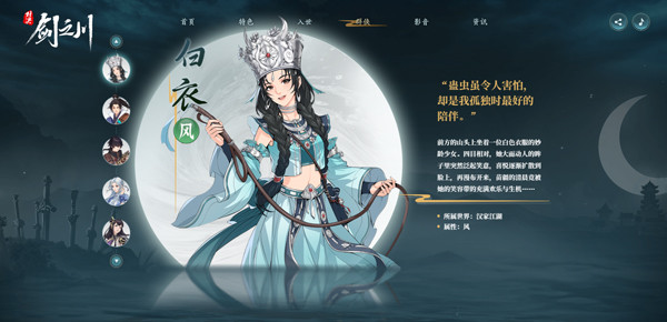 游戏内设计了多样的武侠角色,如西河伽罗、莫知酉、寒烟、白衣、荆成、诸葛鹿、凌雪等,