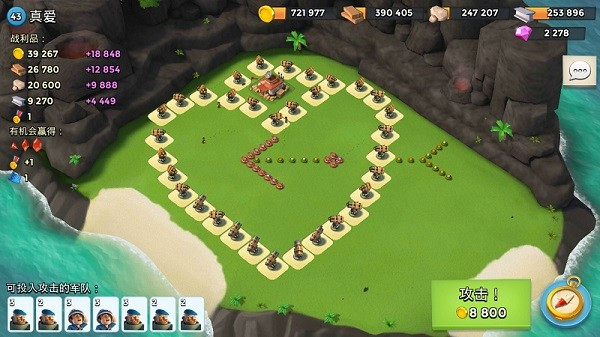 海岛奇兵国际服,英文全名Boom Beach: War Strategy Game,是一款经典的海战题材策略手游,采用清新简约的画风和萌趣生动的人物设计,带给玩家轻松有趣的战争体验。海岛奇兵国际服可以培养多样兵种,入侵敌方岛屿掠夺资源,同时建造坚固的防御工事抵御入侵,享受攻防博弈的乐趣。除了紧张刺激的PVP对抗,还有丰富的探索模式等你挑战,让你在海岛上不断成长,体验策略与冒险的双重魅力。