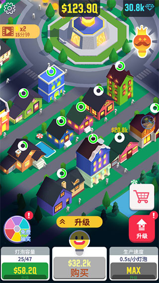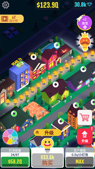 升级灯泡国王,获得更多的能量解锁建筑和街区.