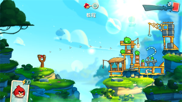 第一关没什么难的,本身就是教程关卡,将小红射向炸药箱就会引起连环爆炸,利用小红的怒吼技能将石块冰块吹到右边的炸药箱和捣蛋猪身上,