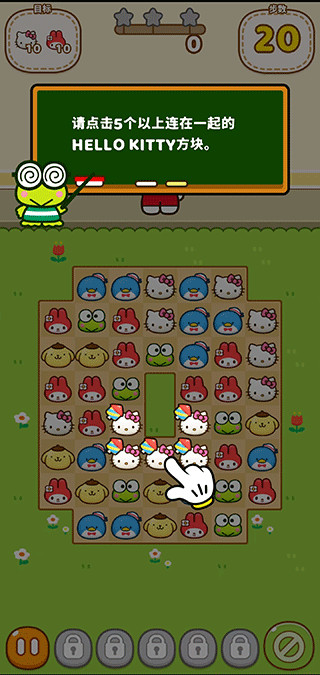 2、请点击两个以上连在一起的hello kitty方块,将其消除。