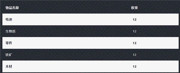 其他掉落物分为三个等级,均包含若干材料、蓝图、种子。当抽取到“其他掉落物”时会先抽取其中一个等级,再抽取掉落物类型(材料、蓝图、种子),最后根据该类型下各个物品的权重得到最终结果。对于每个等级的“其他掉落物”,如果其中包含玩家还未获取到的蓝图,获取蓝图、种子、材料的概率分别为30%、35%、35%;如果玩家获取了所有的蓝图,获取蓝图、种子、材料的概率分别是0、50%、50%。对于特定掉落物获取概率计算公式如下: