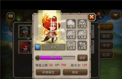 当英雄全身装备穿齐后,即可进行进阶!进阶后的英雄品质将提升,各项属性都将得到大幅提升,并获得新杀伤力更大的新技能。