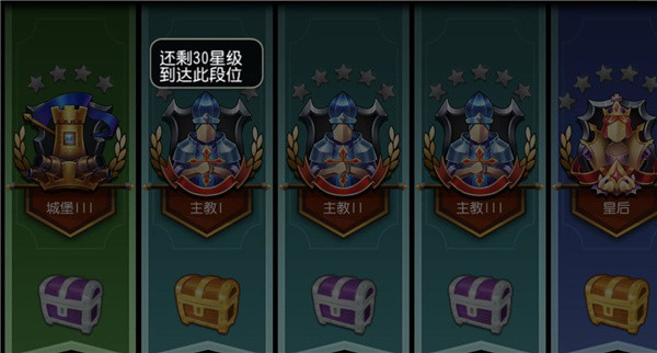 优化以后,升段的难度明显降低了。现在升到主教一共需要:士兵1-3每阶3星、骑士1-3每阶3星、城堡1-3每阶4星,共30星,在不掉星的机制下,一般获胜20把左右就能达到到。如果队长们在赛季开启之前就有一定积分的话,需要获胜的场次就更少了。