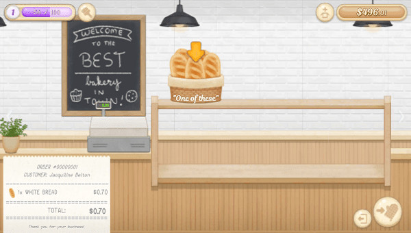 解锁多种面包店升级项目,包括小费罐、零食冰箱等。