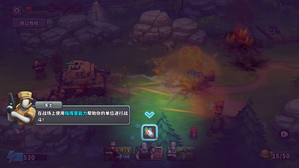4、战场上使用指挥官能力,可以帮助你快速清理掉敌人的火力点,通关更容易。
