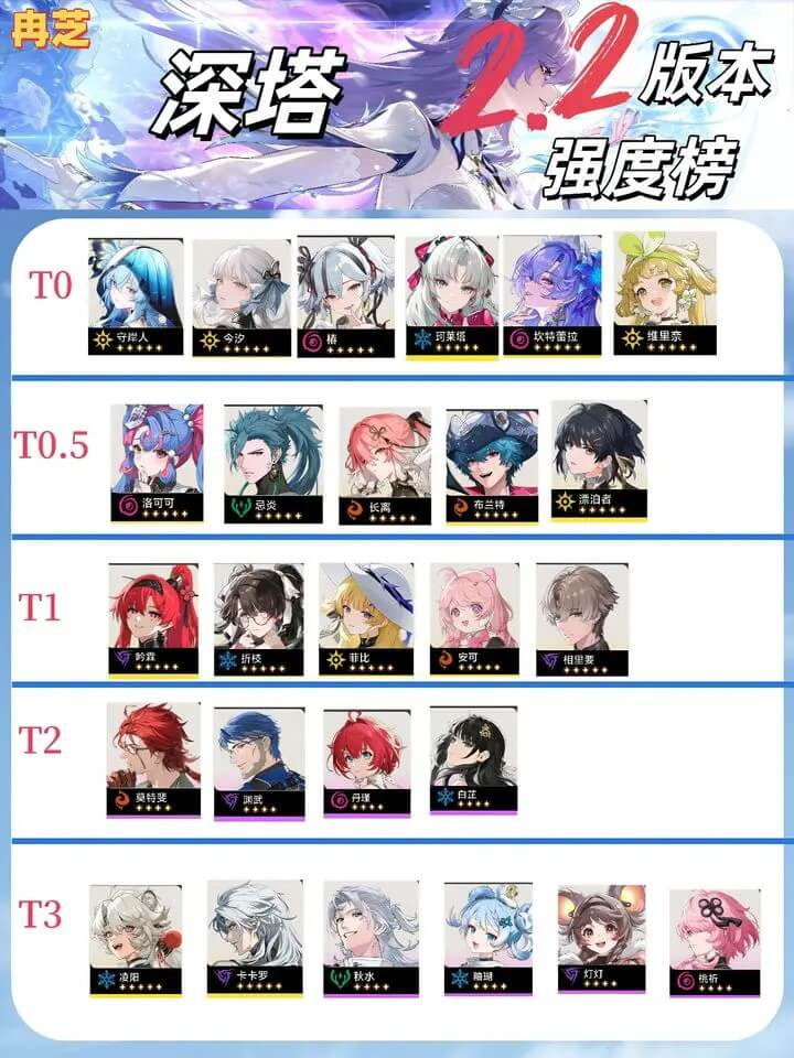 ·T0辅助角色:强度在线且收益高就业广阔角色。深塔配队常用