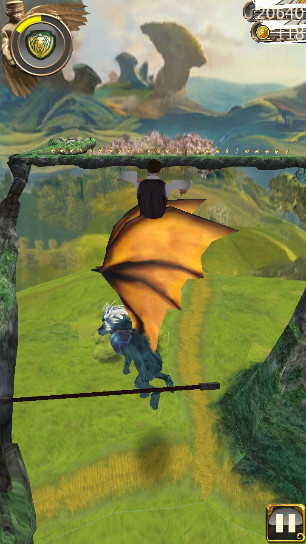 点击向前滑动就能够控制角色跳跃操作,该操作可以进入滑索状态,同时玩家重力感应左右倾斜手机来控制角色左右移动操作,收集各种钱币和躲避各种狭窄的道路