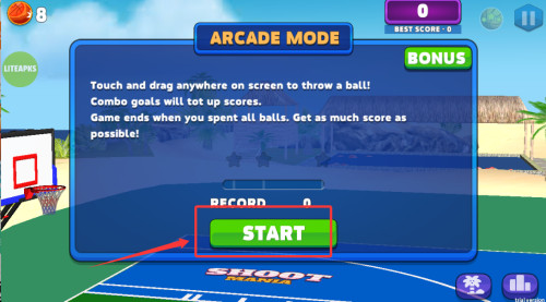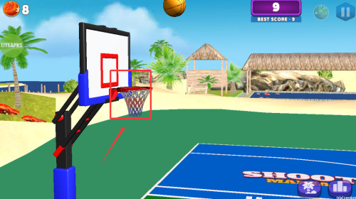 4、通过滑动屏幕控制投篮轨迹与力量,将篮球准确投入篮筐即可获得相应分数。