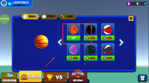 1、在篮球选择界面浏览多种不同外观的球体样式,根据个人喜好确定使用款式。