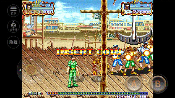 4、进入游戏后你将康总控制角色进行战斗,左边控制角色移动方向,右边A键攻击、B键跳跃;