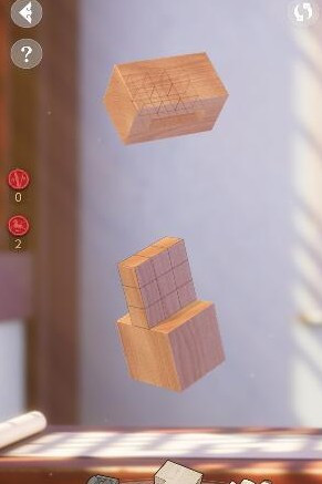 3、只要让榫结构的中层9个方块保留,而另外两层的9个方块消除,榫结构便能插入卯结构中,并与卯结构相吻