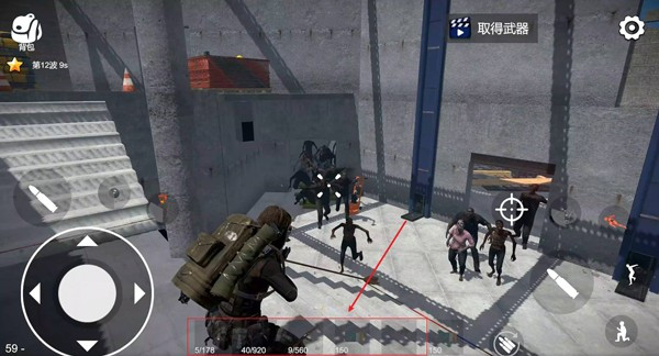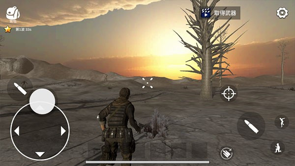 1. 游戏界面左右功能线分明,左侧罗盘操控人物行动与射击方向。
