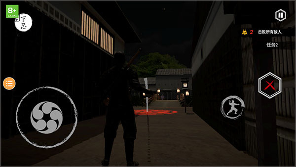 1、玩家将在游戏中扮演一名忍者,通过完成各种刺杀任务来提升自己的等级。
