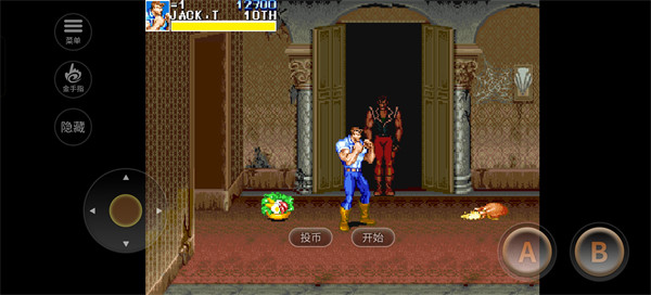 1、进入恐龙快打手机版游戏内,我们选择投币-开始,就会进入选人界面。