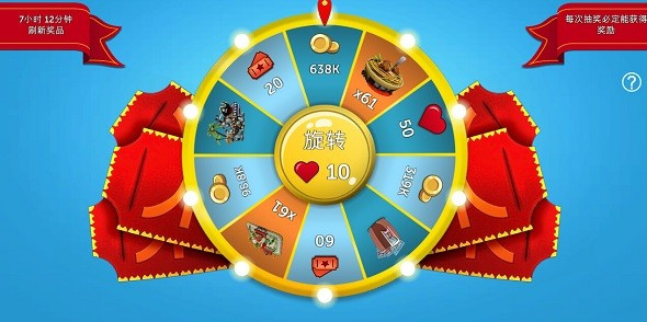 在20级,将开启轮盘功能,首次轮盘需要红心开启,轮盘将会提供非常丰富的奖励,不仅包含金币、点券,还会出现非常稀有的卡片和卡包奖励。在25级还会开启游客专列,使用红心可提升游客的数量和游乐园的收入。