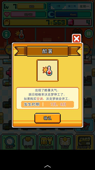 被捕捉之后的“沃克梦”会自动加入公司,但是前提你需要在公司给他们安排足够充足的办公桌。每个月气候不一样,有些气候会导致员工无法工作,这个时候就需要去百货商店购买一些商品,比如沙城暴需要用空气净化器来解决,太热的夏天需要购买空调才能保证员工们的工作正常进行,百货商城每2个小时刷新一次新的,刷新之后除了功能型的道具之外,还有皮带,墨镜等奢侈品,购买奢侈品并使用可以让你的员工工作收益更高。