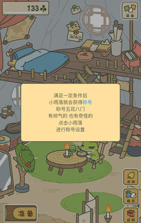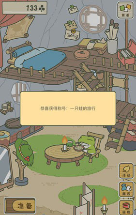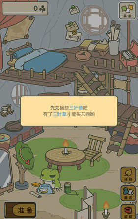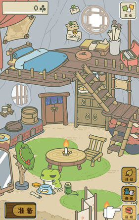 然后我们点击右下角的“小屋”返回房间里,在房间里点击左下角的“准备”按钮,开始为青蛙准备旅行的行李。