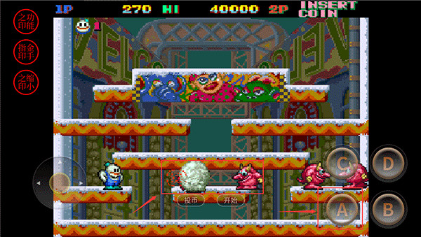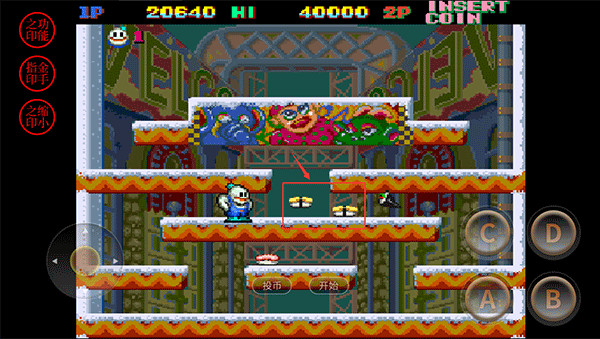 3、设置完成后返回游戏开始界面,先点击投币,待CREDIT显示数字1时,再点击开始即可进入游戏