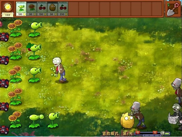 2、在攻击植物的选择上,玩家可以率先考虑不需要阳光消耗的花盆小喷菇,花盆小喷菇本身拥有一定的战斗力,并且不占用部署位置,在花盆小喷菇的上方也可以种植别的植物,例如土豆地雷、豌豆射手或寒冰豌豆射手等等,可以帮助玩家平安的度过前期,并且节约很多的收集资源的时间,在夜间模式中玩家可以适当携带吞噬怪这个植物,因为场地上数量比较多的墓碑会阻挡部署的效率。