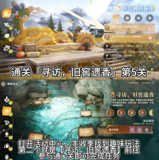 打开活动中心,丰收季找到趣味玩法第二个就是【寻访,旧窖遗香】前往参与通5关即可完成任务