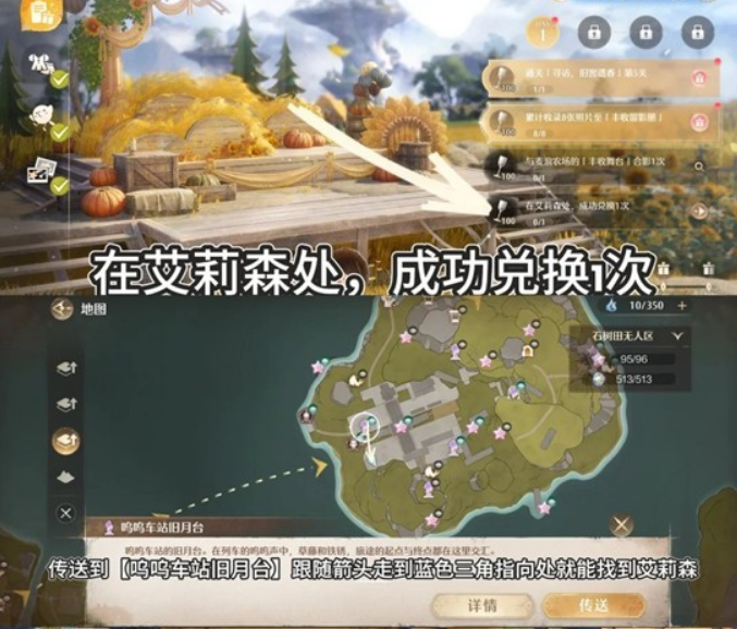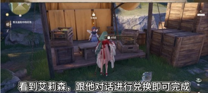 传送到【呜呜车站旧月台】跟随箭头走到蓝色三角指向处,看到艾莉森跟他对话进行兑换即可完成任务
