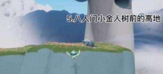 走到八人门小金人大树前方的高地,第五个神坛就在那里。