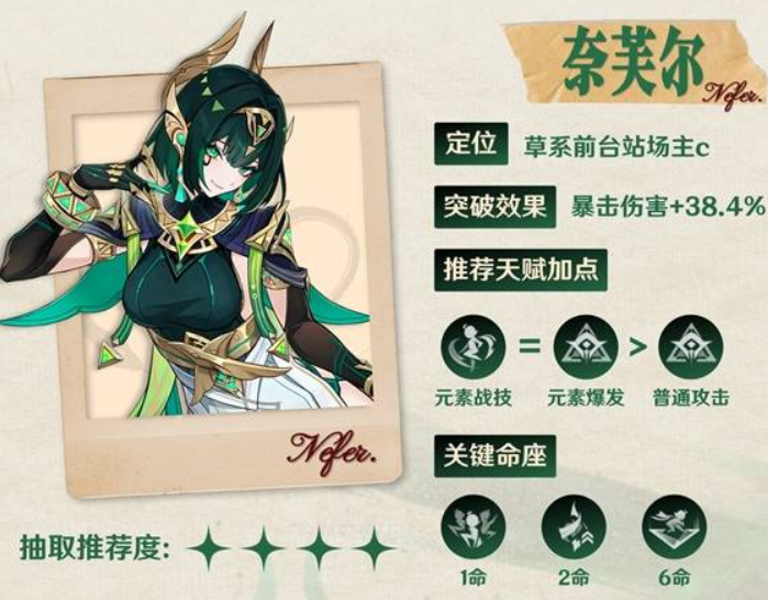 3.没有菈乌玛且没有草神的旅行者谨慎抽取:没有脱手后台草的情况下,只能靠奈芙尔自己产草露,会影响输出轴长和输出时间。