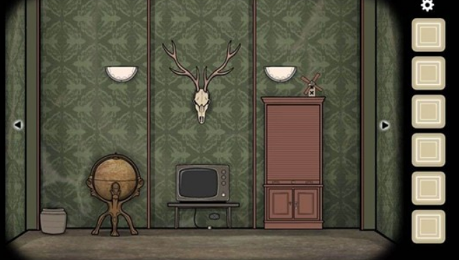根据大柜子中书中的提示,鹿头位置代表12点,窗户位置代表6点。通过分析门、地球仪、柜子等物品的相对位置,可以得出左边图案对应11点45分,右边图案对应3点整。