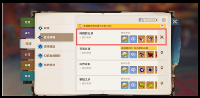 背水的逆转诗成就对应的战斗发生在碑碣的记录副本中,位于奶奶突破材料区域的右下角位置。如果尚未推进主线剧情,可以通过界面右上角的小书图标进入秘境界面,选择征讨领域中的碑碣的记录直接开启挑战。虽然可以跳过主线提前参与,但建议优先完成相关主线任务以避免剧情剧透影响体验。该副本支持不同等级难度选择,推荐等级为60级的玩家可尝试通过低等级副本降低战斗压力,实现逃课打法。