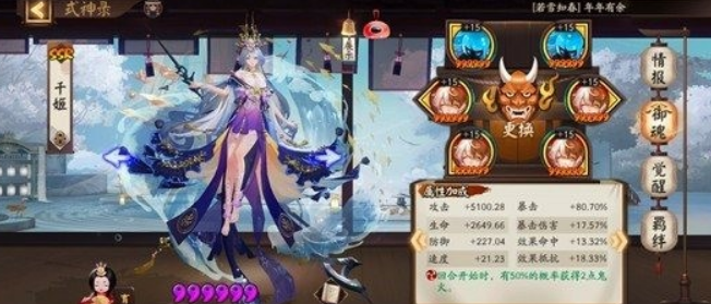 食灵6星满技能,帝释天6星满技能,日和坊5星满技能,千姬6星111,蝎女6星255,晴明灭和盾