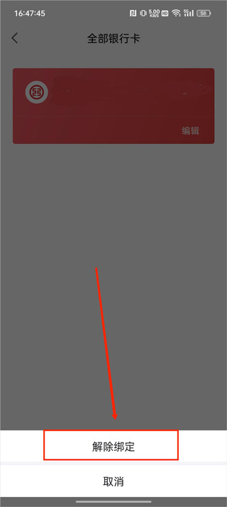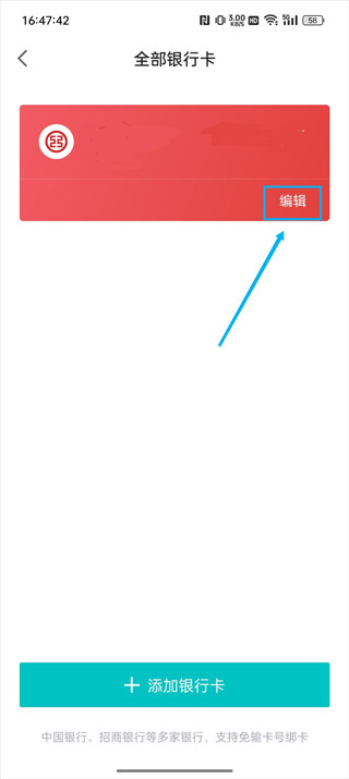 然后找到你要解绑的银行卡,点击银行卡右下角的【编辑】
