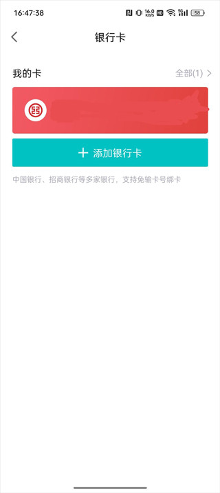 进入银行卡管理后你将会看到这个账号绑定的所有银行卡,点击上方的【全部】按钮