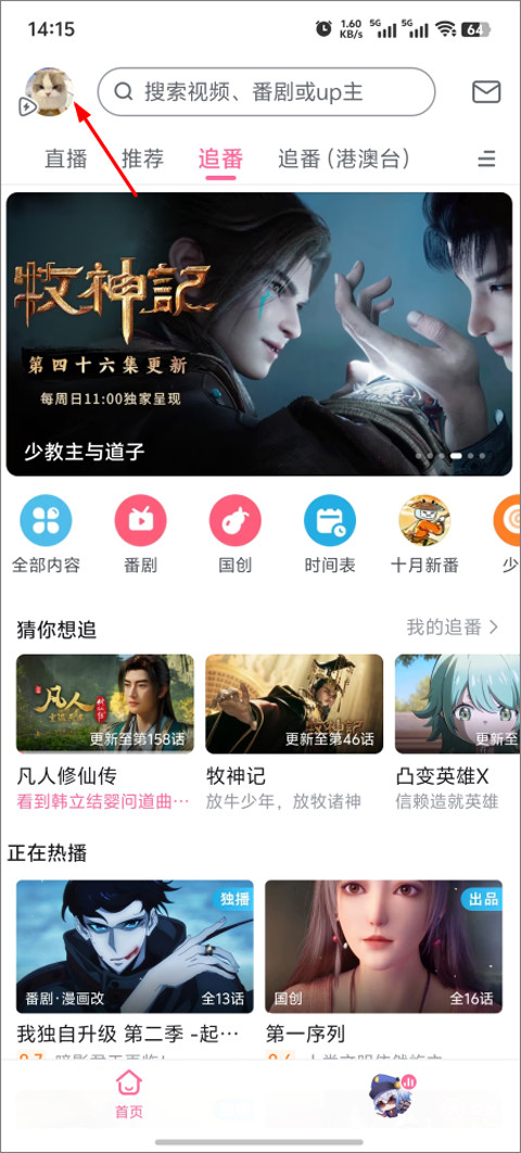 1、首先打开b站,进入后点击左上角头像;