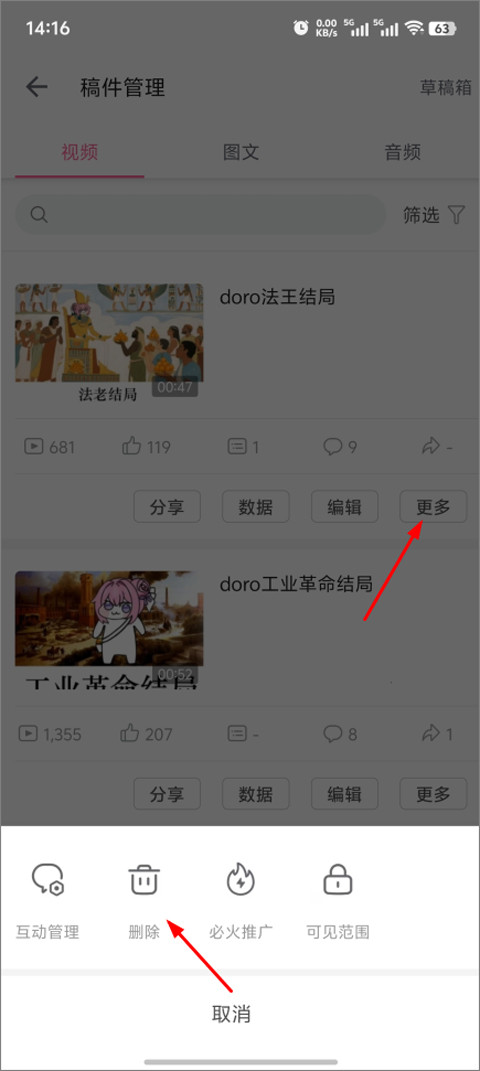 b站app怎么删除自己的投稿?