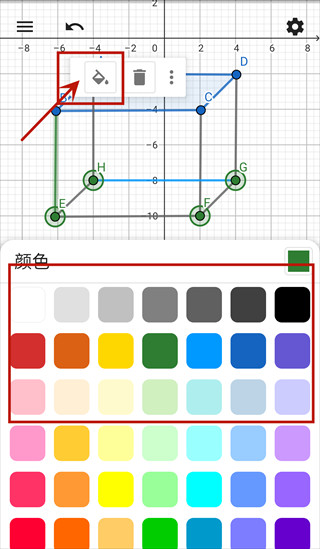 7、选中任意点、面在【颜色】选项卡下,选择自己喜欢的一个颜色,那么我们选中的这个页面的颜色就会改变,你可以通过同样的操作方法对其他几个页面进行颜色的更改。