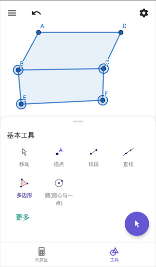 几何画板手机版geogebra是功能强大的函数绘图软件,支持轻松绘制三角形、圆形、多边形等各种几何图形。操作简便,用户只需拖动点、线、角即可灵活调整图形形状,极大提升实用性。完成的图形支持保存与共享,方便用户交流和展示。无论是学习还是教学,几何画板手机版安卓版app几何画板都能助你高效完成几何作图,是几何绘图的得力助手。