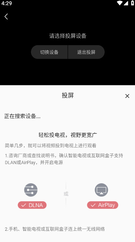 3.将自己的手机和电视连接同一个WiFi,然后点击搜索到的设备并进行连接,就可以实现投屏了。