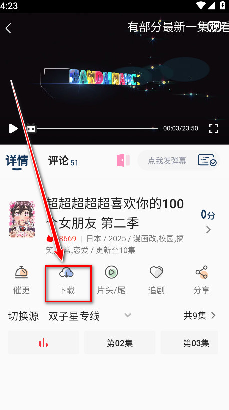 1.打开双子星动漫,找到并点击需要下载的动漫资源。