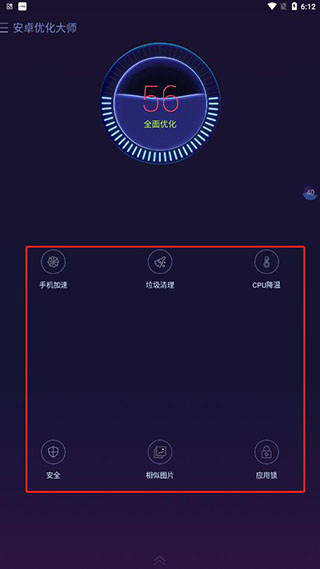 1、下载打开安卓优化大师手机版,UI界面清爽简单,功能一目了然;