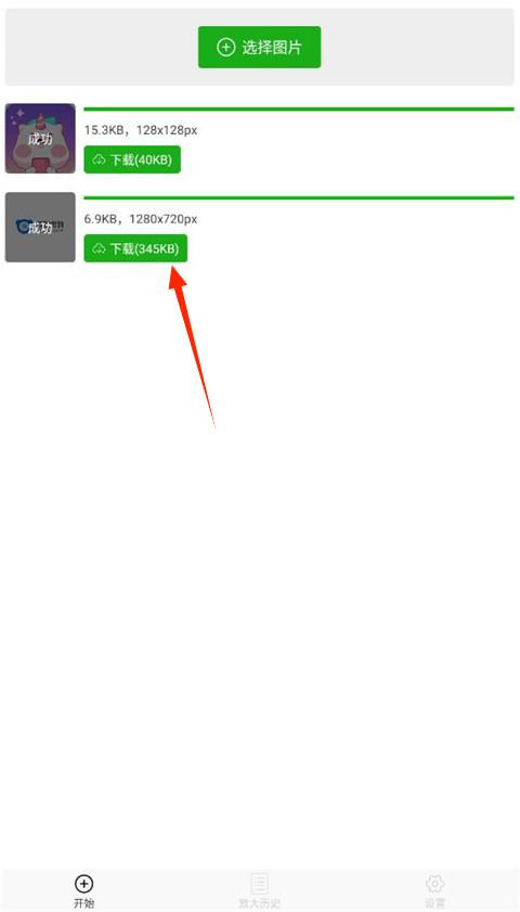 1、打开软件,点击选择图片,从手机相册里选择一张要放大的图片