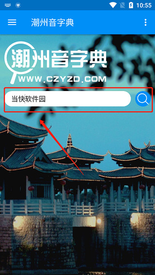 1、首先打开潮州音字典app,在软件上方的搜索框中输入您要查询的文字,支持多字查询。