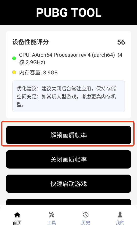 1、能够帮助用户对吃鸡游戏的画质进行帧率的解锁。