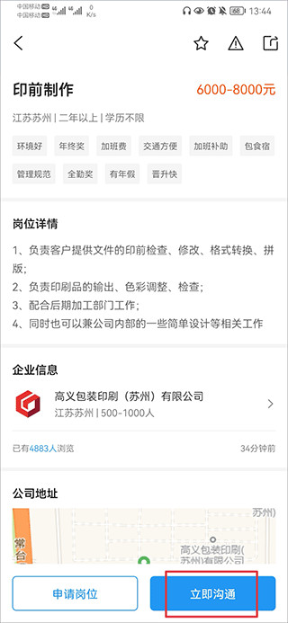 4、如果有心仪的公司后,可以点击立即沟通与该公司hr进行详细了解