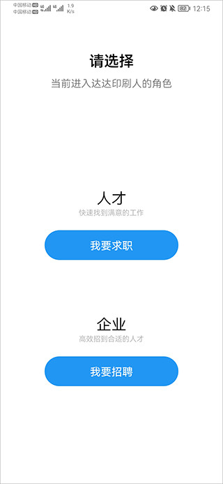 1、进入达达印刷人app后,首先选择求职或招聘登录