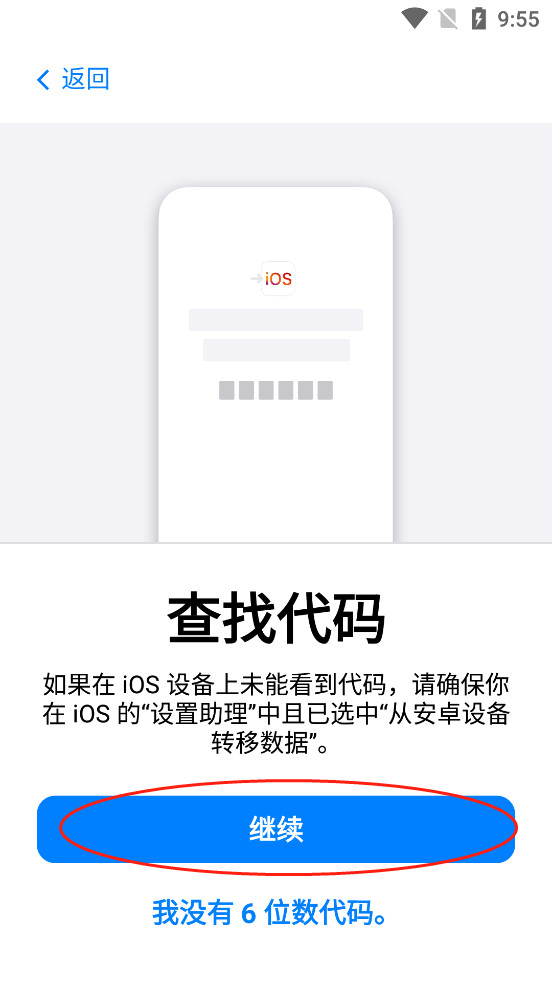 3.并查找附近正在运行“转移到 ios”的 android 设备。