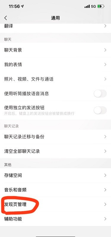 3、在通用设置中,向下滚动并点击“发现页管理”。